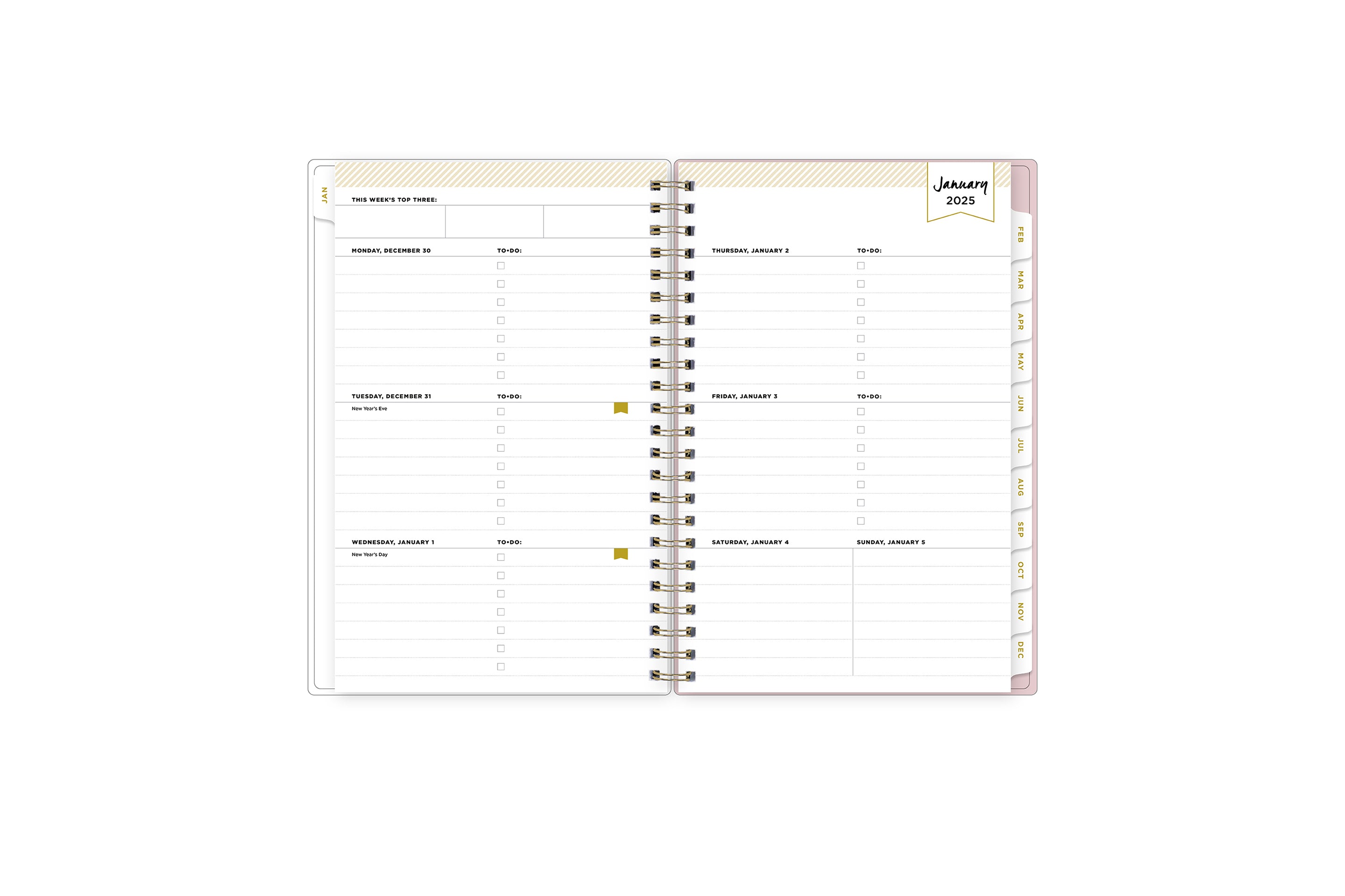 Organize tasks and time with the Fly By weekly and monthly 2025 planner from Blue Sky that includes a storage pocket Use the weekly layouts, tabbed monthly views, and notes pages.